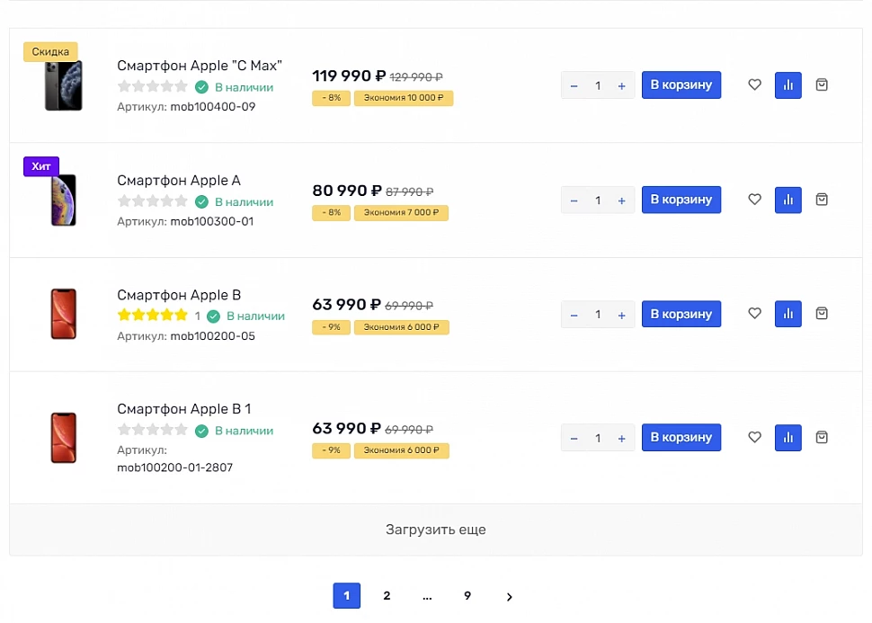 Добавили много новых настроек. Например вывод артикула в карточках категорий.
