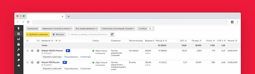 Настройка рекламной компании в Яндекс.Директ под бюжет и нужды заказчика.