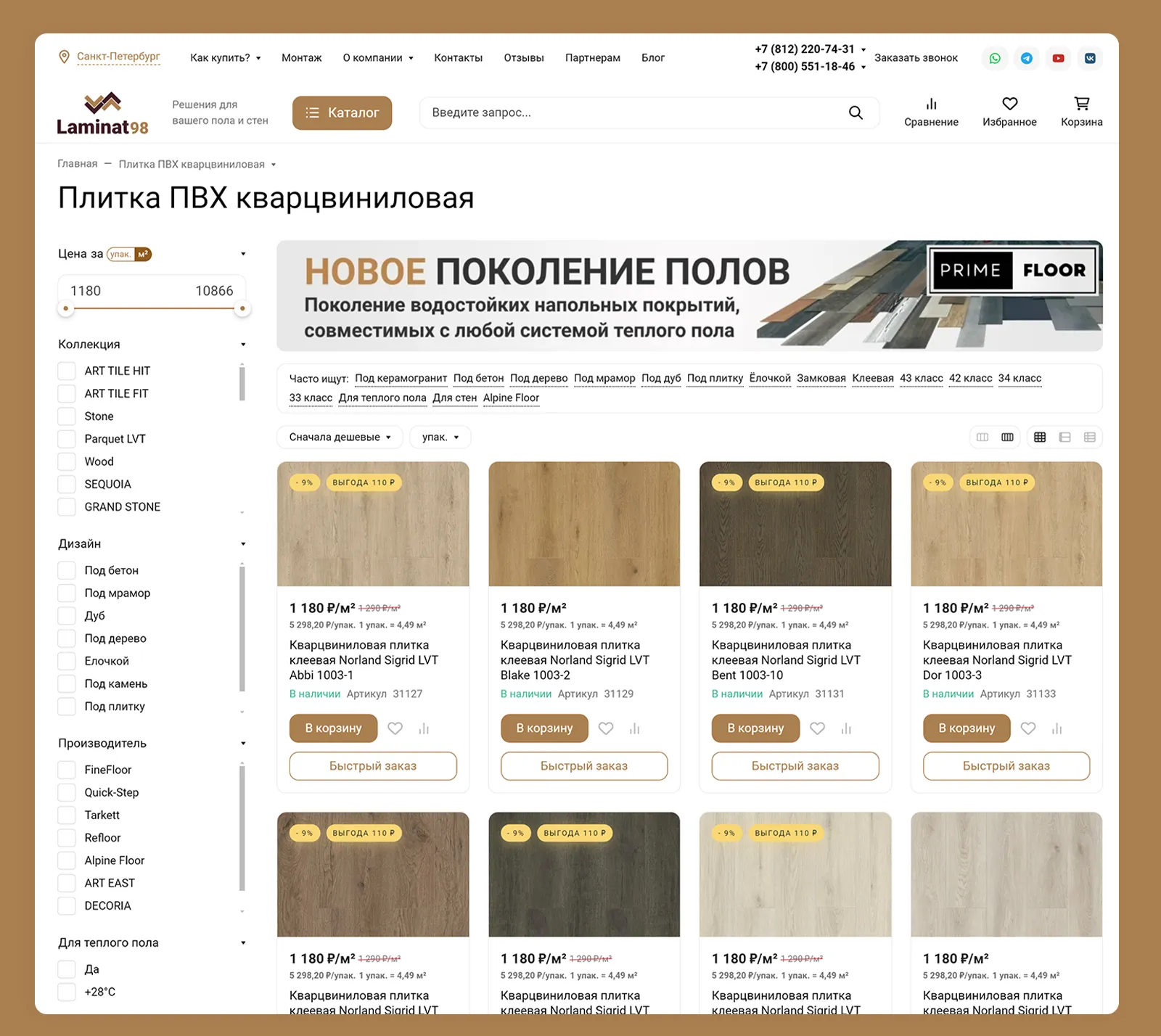 Мы продолжаем сотрудничество с компанией «Ламинат 98», выполняя разовые доработки магазина, обновляя платформу и тему дизайна Easyweb: Seller для обеспечения стабильной и эффективной работы сайта.