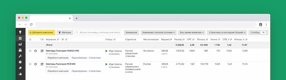Специально под заказчика была разработана рекламная компания в Директе под минимальный бюджет.