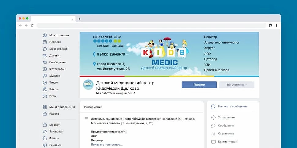 Всесторонняя рекламная поддержка медицинского центра Кидсмедик .